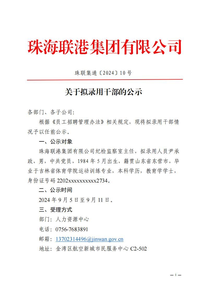 珠聯(lián)集通〔2024〕10號 關(guān)于擬錄用干部的公示